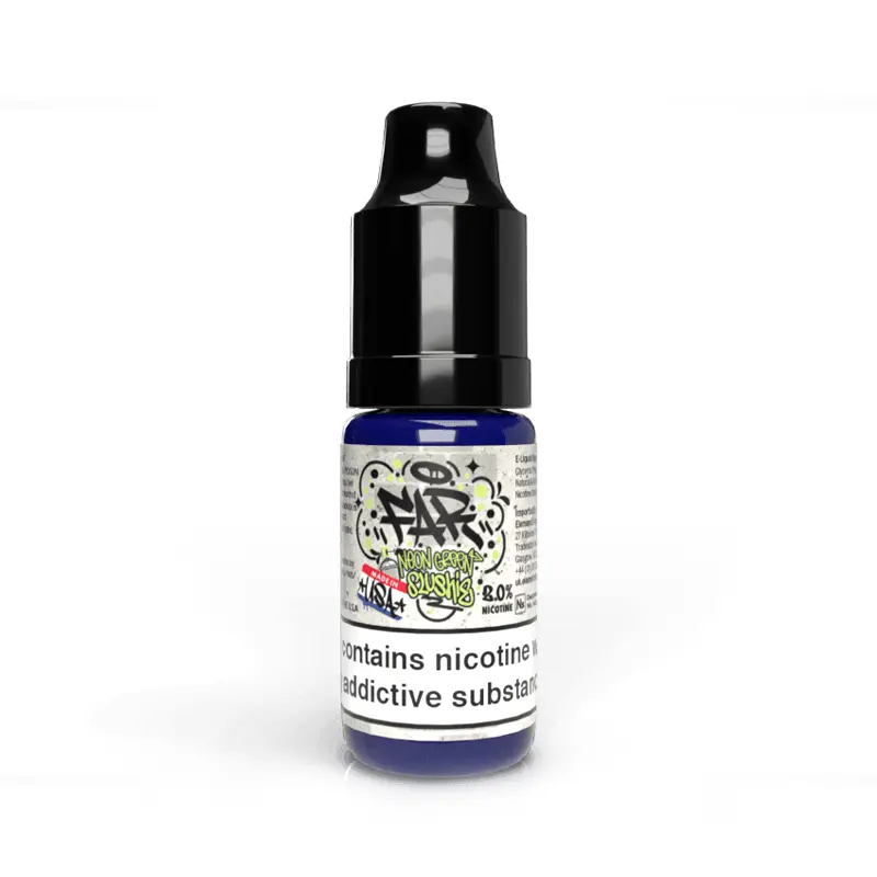 | Flavours | 555 Tobacco, Chocolate Tobacco, Crema, Far Candy Punch, Far Grape Vape, Far Neon Green Slushie, Fresh Squeeze, Frost, Honey Roasted Tobacco, Key Lime Cookie, Pink Grapefruit Blueberry, Pink Lemonade, Strawberry Whip, Watermelon Chill |