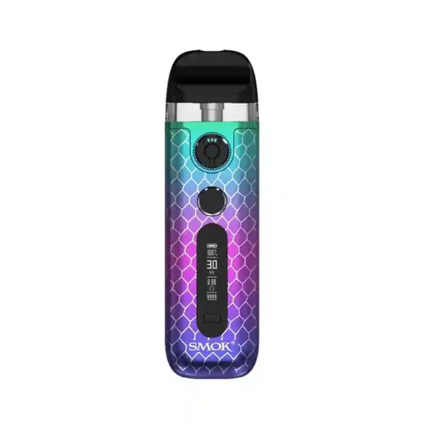 The Novo5 has been available in a range of bright colours and beautiful designs that help to express styles. The device features a glossy OLED display that can be incorporated into the design and gives a clear view of the main information, such as power, battery, and puff count.