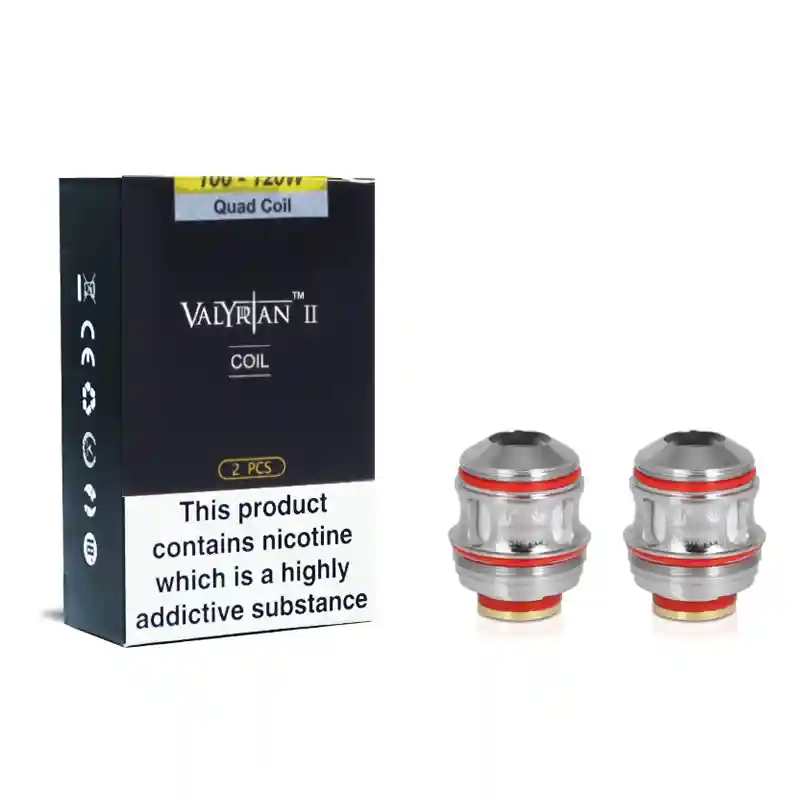The pack includes 2 Vape Coils with different resistance options, including 0.14 Ohm, 0.15 Ohm, 0.16 Ohm, and 0.32 Ohm. Upgrade your vaping experience with Uwell Valyrian 2 Replacement Coils.